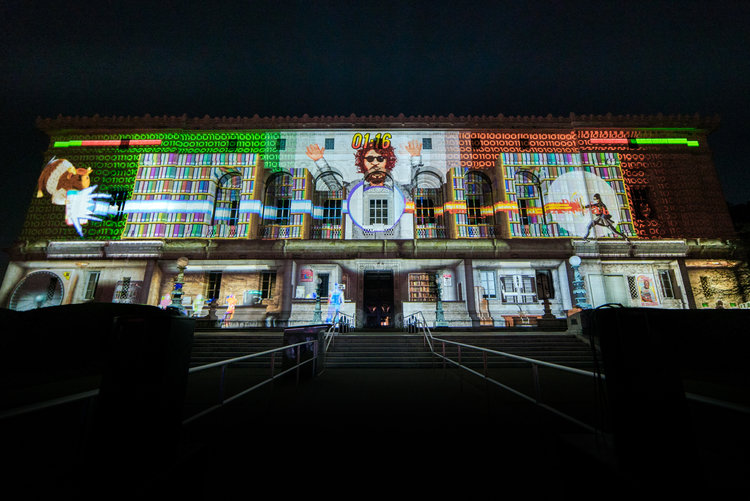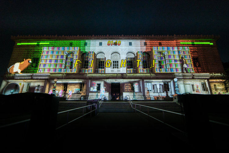 在底特律舉行的DLECTRICITY藝術節上,KlipCollective將一個信息時代的寓言帶到了底特律公共圖書館。